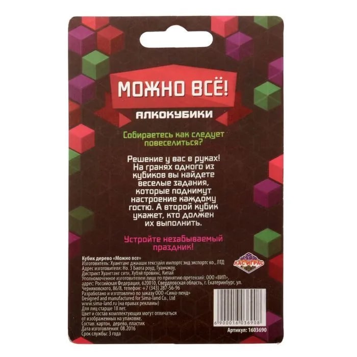 Купить кубик "можно все", алкокубики для принятия решений от 60 руб. с доставкой до пункта выдачи в Инкермане. Интернет магазин ДекаМаркет. Оплата при получении.