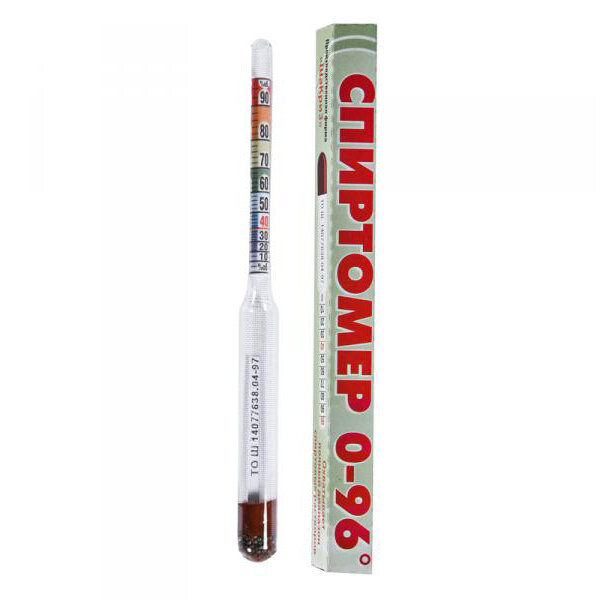 Спиртомер бытовой универсальный 0-96% - прибор, определяющий объемную долю этилового спирта, содержащегося в водном растворе. Данный спиртомер показывает процентное содержание этилового спирта в диапазоне от 0 до 96%.Для определения процентного содержания этилового спирта поместите сухой и чистый Спиртомер 0-96% в емкость с жидкостью таким образом, чтобы он свободно плавал в ней, не касаясь стенок сосуда.Данный прибор подходит только для не газированных жидкостей, прошедших через дистилляцию или ректификацию. Не подходит для измерения крепости пива и вина.